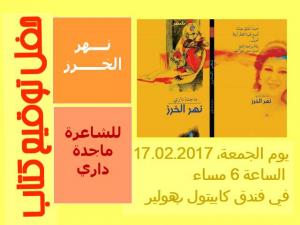 بمناسبة صدور باكورة أعمال الشاعرة ماجدة دراي تحت عنوان ( نهر الخرز) سيقام حفل توقيع مجموعتها الشعرية برعاية مؤسسة سما للثقافة والفنون في قاعة المؤتمرات بفندق كابيتول (أربيل) يوم الجمعة الواقع في 17 شباط 2017 والدعوة عامة