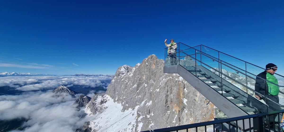 الجبل والإنسان والحيوانات حكايات لا تقهر في مهرجان أفلام الجبال وقد شاركت 44 دولة بافلامها هذا العالم ووقتها ساله كاتب المقال ان كانت دولا جديدة تشترك باعمالها هذا العام وسؤلا آخر عن سبب التركيز فقط على لجنة حكام من النمسا لتقييم الافلام الفائزة واجاب برحابة صدر على اسئلة الكاتب وتحدث عن جوائز المهرجان وبعدها انطلقنا لنشاهد جبل داخشتاين وسلالم صوب السماء في جو مشمس بالرغم بأن كثافة الضيوف لم يفسح المجال للتمتع كثيرا بالجبال. فحيث هناك القصر الجليدي، ودعنا الجبل للعودة إلى مدينة جراتس النمساوية ولكن يظل الجبل ورهبته في القلب والفكر وخالدا في الذاكرة! داخشتاين قصيدة لم تكتب بعد!!
