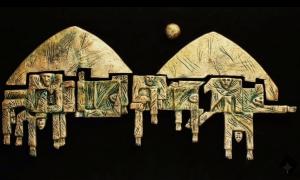 الرَّمْزِيَّةُ المَكَانِيَّةُ: تَظْهَرُ المُثَلَّثَاتُ الكَبِيرَةُ فِي الأَعْلَى كَرَمْزٍ لِقُبَابِ الجَوَامِعِ وَجِبَالِ كُرْدِسْتَانَ، أَمَّا القَمَرُ فَوْقَ القُبَابِ فَهُوَ الشَّاهِدُ الوَحِيدُ عَلَى المَأْسَاةِ، وَكَأَنَّهُ يَحْتَضِنُ الضَّحَايَا أَوْ يَضْغَطُ عَلَيْهِمْ بِثِقَلِ الفَاجِعَةِ.